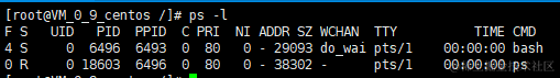ps -l 命令:不想查看所有进程,只查看当前登录产生的进程使用此命令即可: