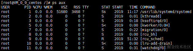- ps aux 命令:查看系统中所有的进程:(使用BSD操作系统格式,注意没有 “-” )