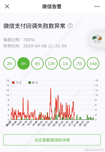 事情是这样的,公司领导收到了一个微信告警,如下图,提示“微信支付回调失败数异常”: