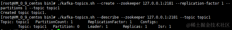 ./kafka-topics.sh --create --zookeeper 127.0.0.1:2181 --replication-factor 1 --partitions 1 --topic topic1