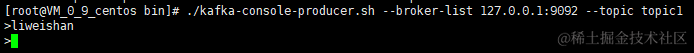 ./kafka-console-producer.sh --broker-list 127.0.0.1:9092 --topic topic1