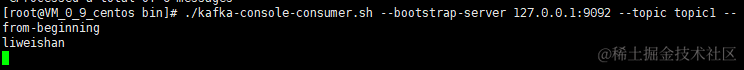 ./kafka-console-consumer.sh --bootstrap-server 127.0.0.1:9092 --topic topic1 --from-beginning