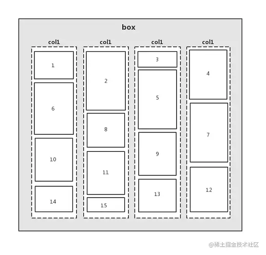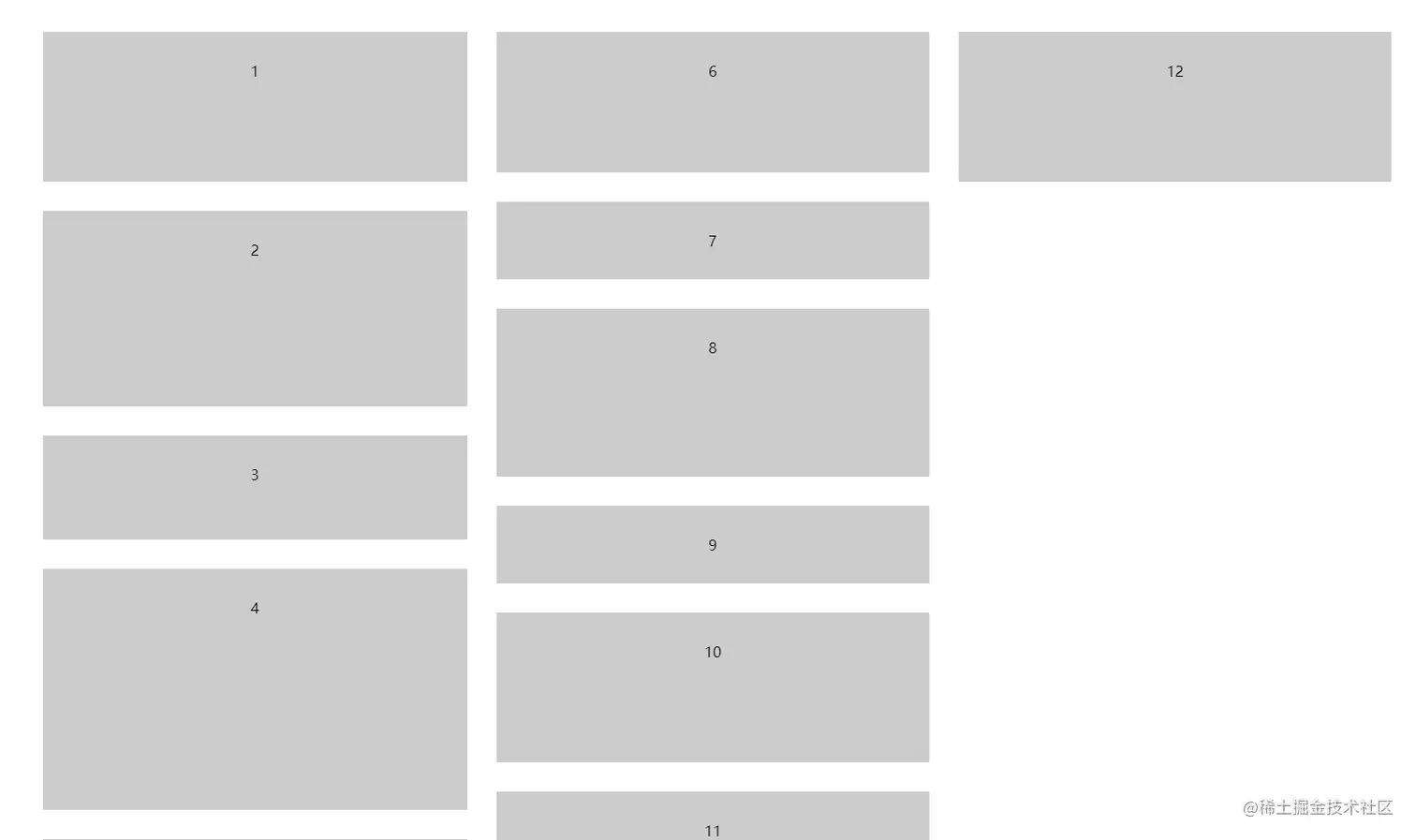/* 这里还会用到另一个属性 column-gap,用来调整边距,实现瀑布流布局 */