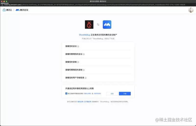 点击“开通”获取应用授权