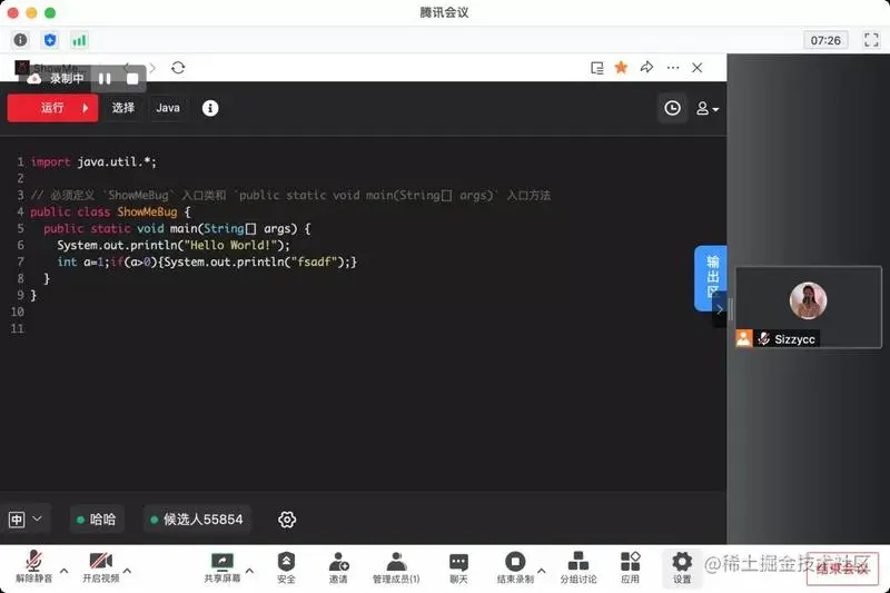 然后就可以在腾讯会议内使用ShowMeBug 面试间啦~