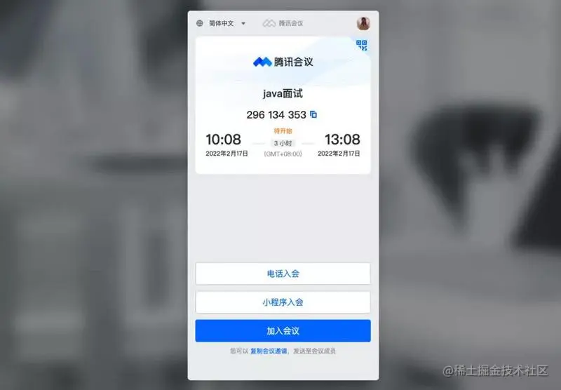 点击【加入会议】进入腾讯会议面试间