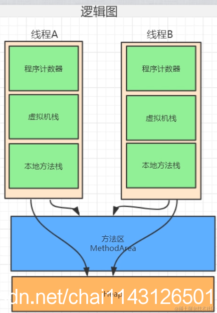 线程共享:方法区和head(堆)