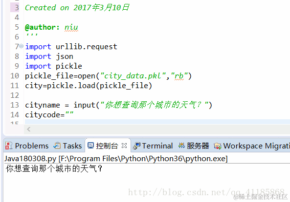 cityname = input("你想查询那个城市的天气?")