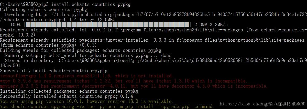 - pip3 install echarts-countries-pypkg #全球国家地图