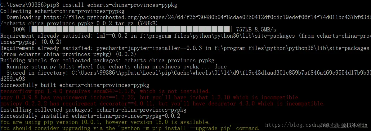 - pip3 install echarts-china-provinces-pypkg #中国省级地图