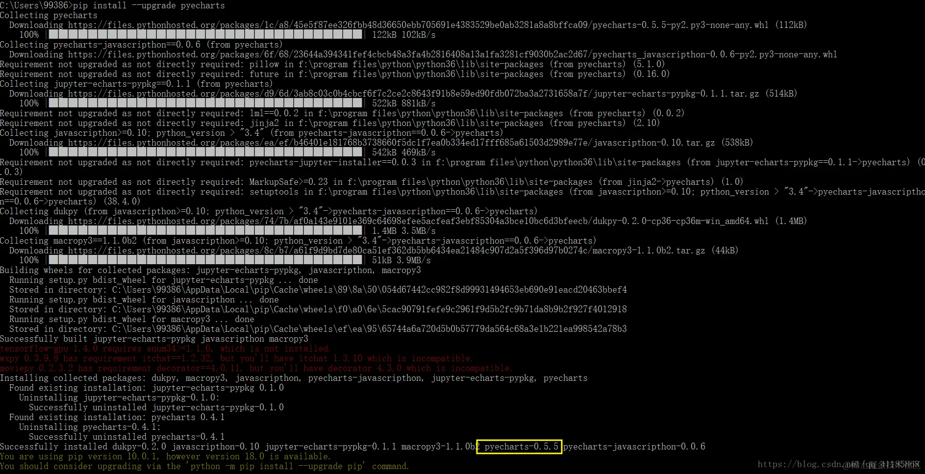 通过上边的叙述,我们都知道有一个很厉害的可视化工具:Echarts,但是国内的一个大神创建了一个轮子:pyecharts,可以实现用python调用echatrs。