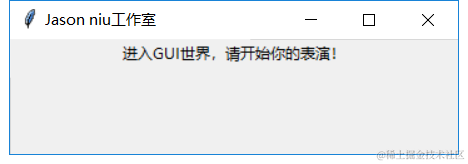 theLabel=tk.Label(app,text="进入GUI世界,请开始你的表演!")