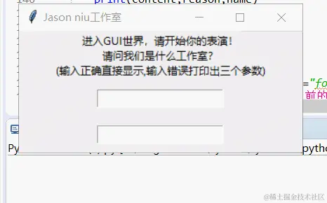 theLabel=tk.Label(master,text="进入GUI世界,请开始你的表演!\n请问我们是什么工作室?\n(输入正确直接显示,输入错误打印出三个参数)")