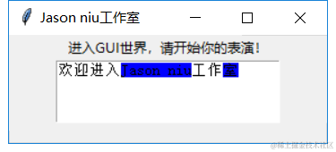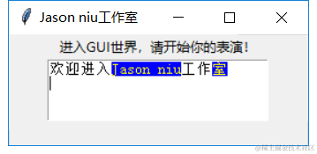 text.insert(INSERT,"欢迎进入Jason niu工作室\n",("tag2","tag1"))