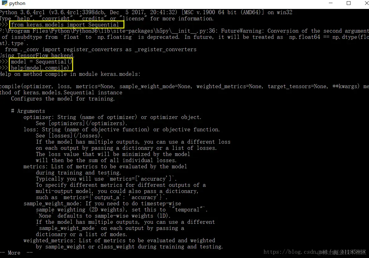(1)、model.compile()函数,用来配置训练模型参数,可以指定你设想的随机梯度下降中的网络的损失函数、优化方式等参数(2)、model.summary()函数,Prints a string summary of the network.