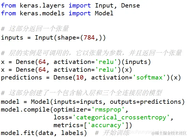 Keras 函数式API 是定义复杂模型(如多输出模型、有向无环图,或具有共享层的模型)的方法。