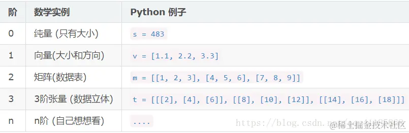 你可以认为一个二阶张量就是我们平常所说的矩阵,一阶张量可以认为是一个向量.对于一个二阶张量你可以用语句t[i, j]来访问其中的任何元素.而对于三阶张量你可以用't[i, j, k]'来访问其中的任何元素.