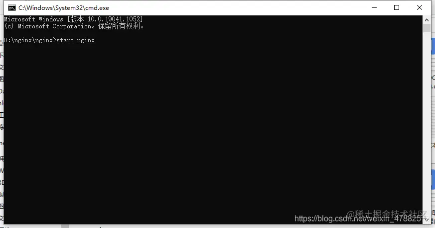 5.在nginx主文件夹中得到地址栏里输入cmd然后回车,打开cmd,输入命令start nginx并回车