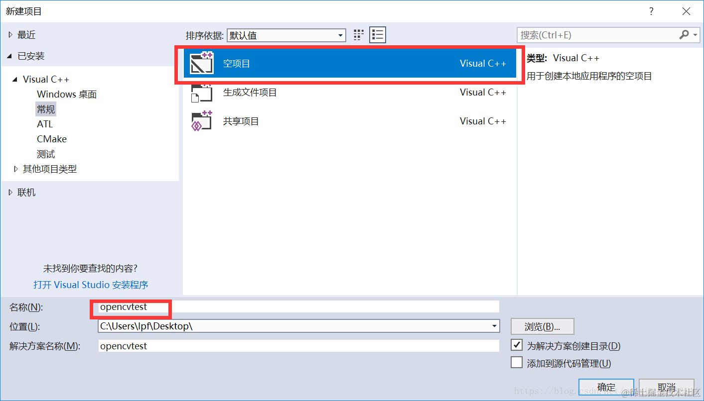 打开Visual Studio,第一步:创建工程,快捷键:ctrl+shift+n