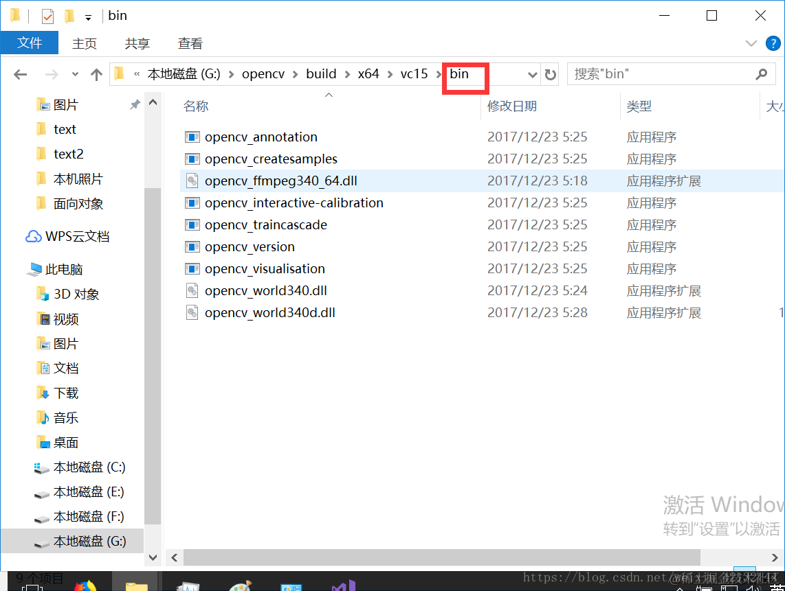 最后一步:在Windows文件夹下介入OpenCV动态链接库(G:\opencv\build\x64\vc15\bin), 就是把相关的dll都复制到Windows操作系统的目录下。存放路径就是C:\Windows\System32.