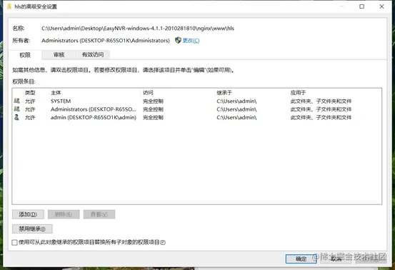 没有生成HLS流原因有很多。首先我们来检查一下目录有没有读写权限: