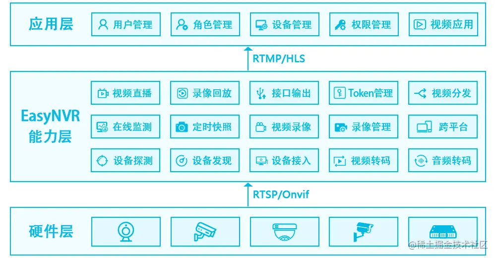 EasyNVR视频边缘计算网关是软硬一体的产品,它的视频能力在于通过RTSP/ONVIF协议,接入前端音视频采集设备,将拉取过来的音视频流转化成适合全平台播放的RTMP、FLV、HLS、WebRTC等视频流格式。无论是PC浏览器还是手机APP、手机浏览器、微信客户端,EasyNVR都能做到无缝接入,为用户提供随时随地查看视频图像的体验。