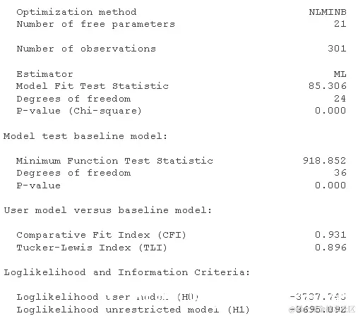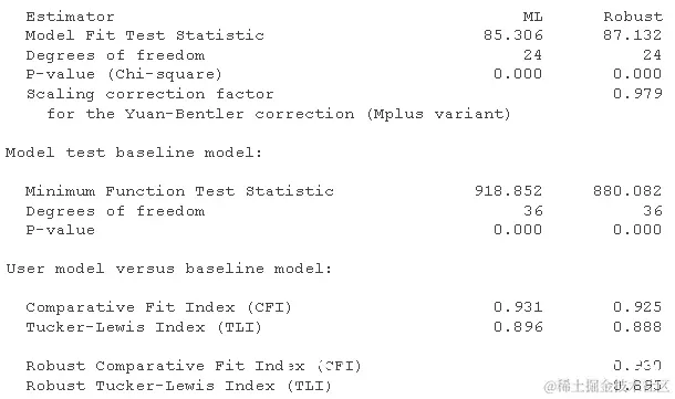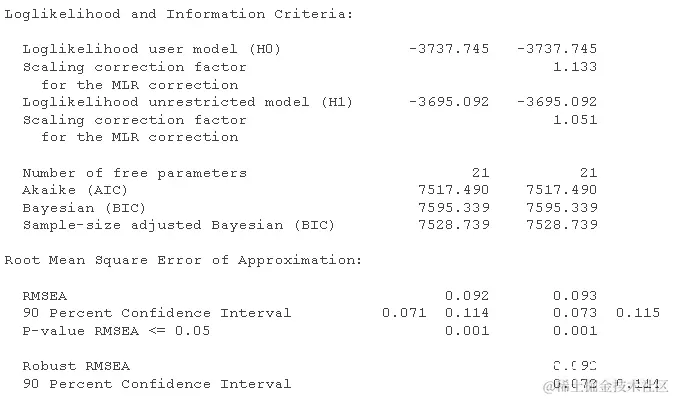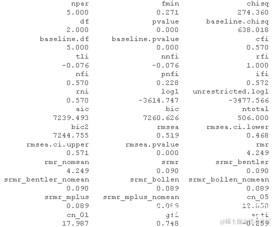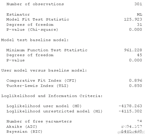 这些看起来很差:CFI < .95(甚至远低于 0.9),而 RMSEA 远高于我们认为“还可以”的 0.08 水平。