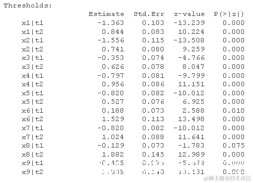 请注意,我们现在对每个项目都有阈值估计,其中较高的数值表示对一个类别和下一个类别之间的边界有较高的估计,而这个潜在的连续体据说是该项目的基础。