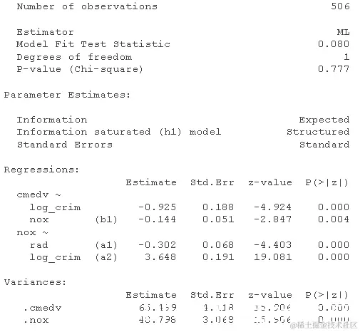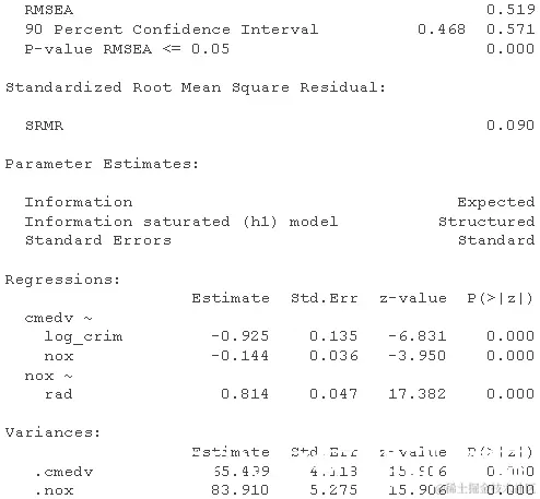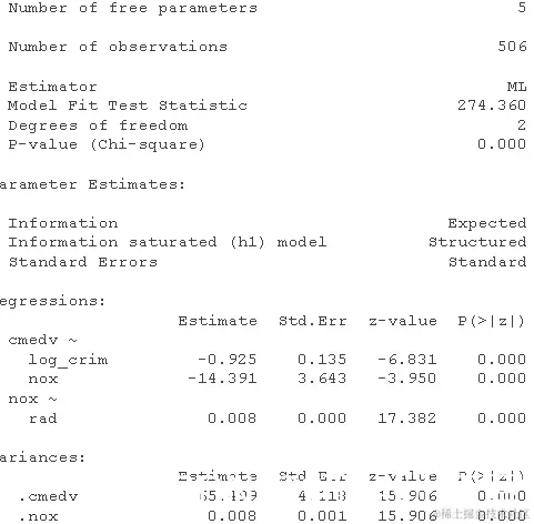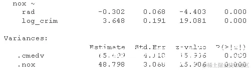 在这里,我们看到如果我们允许 log_crim 预测 ,模型拟合会大大提高nox。这是否具有理论上的意义是另一回事(而且可能更重要)。出于演示目的,让我们接受需要自由估计这条路径。