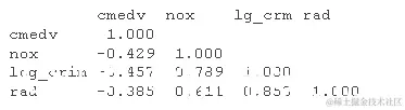 此外,我们假设房屋靠近大型高速公路(rad)预测一氧化氮的浓度,从而预测较低的房价?