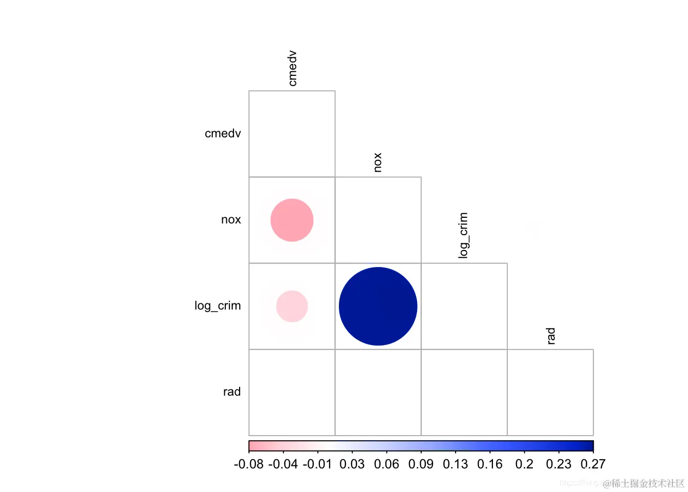 因此,该模型显着低估了 nox 和 crim之间的 关联 。