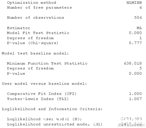 您可以在模型摘要输出中使用更详细的全局拟合指数。