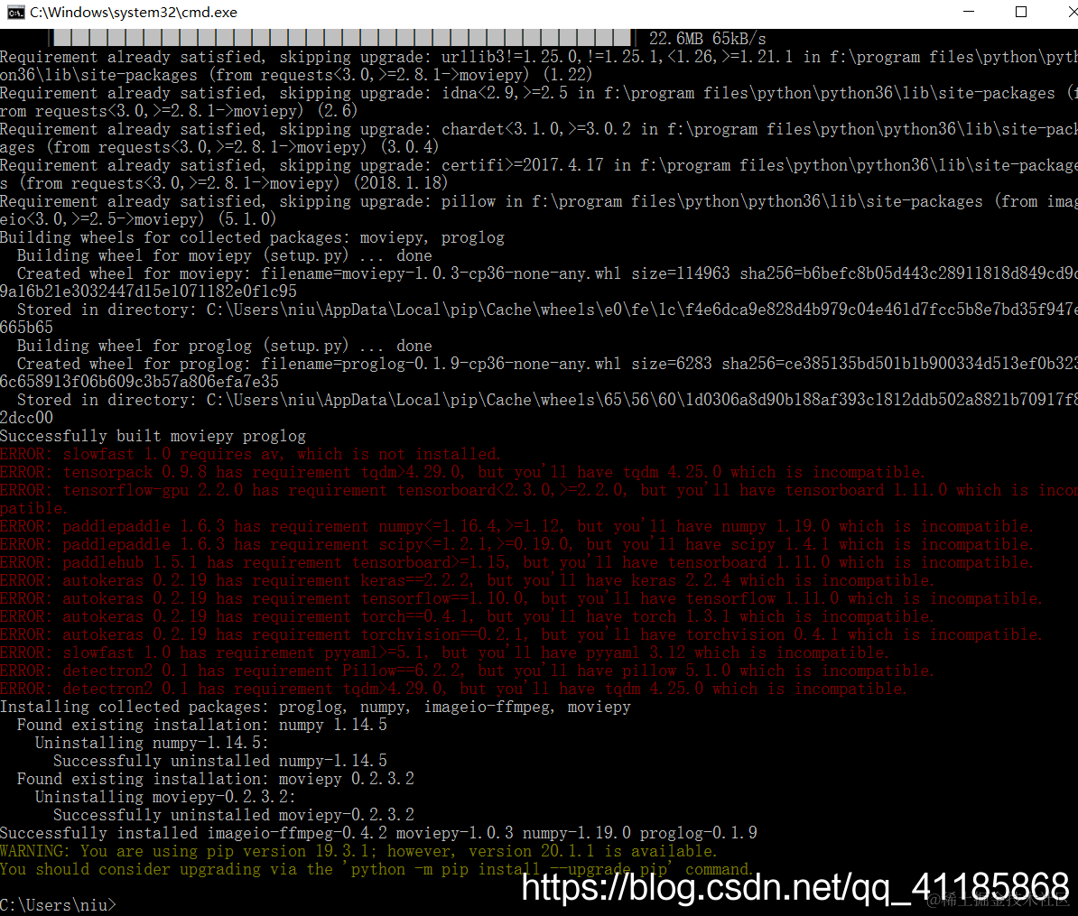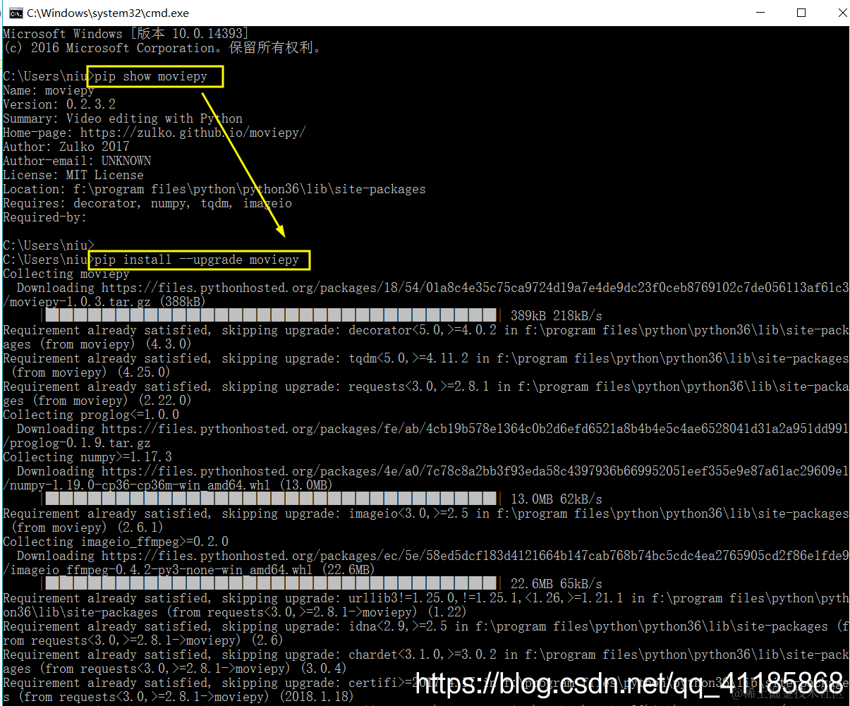 pip install --upgrade moviepy