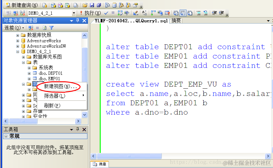 SQLServer:GUI方式、SQL语句两种方式建立视图和GUI方式设置主键、约束等