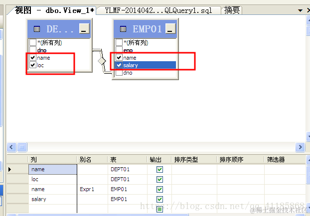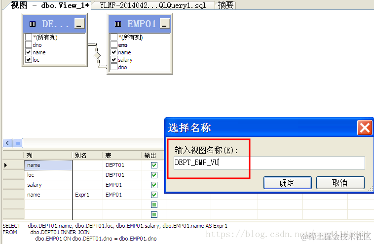 基于表DEPT01和表EMP01的部门名、部门位置、雇员名、工资字段,建立复杂视图DEPT_EMP_VU。