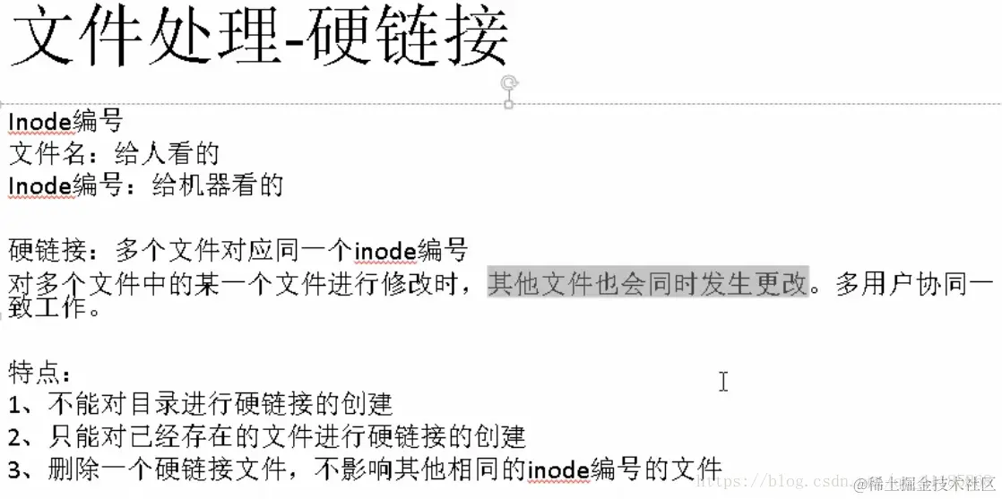 软连接(Windows下的快捷方式)、硬连接(多个文件对应一个inode编号(给机器看的,文件名时给人看的))