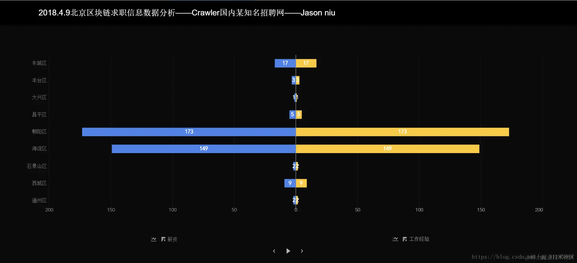 国内某知名招聘网北京关于区块链职位的求职信息分析图