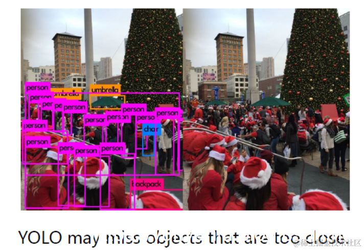 对小目标及邻近目标检测效果差:当一个小格中出现多于两个小目标或者一个小格中出现多个不同目标时效果欠佳。
