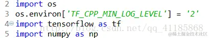 os.environ["TF_CPP_MIN_LOG_LEVEL"]='2' # 只显示 warning 和 Error