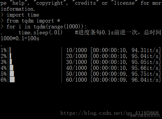 显示循环的进度条的库。taqadum, تقدّم)在阿拉伯语中的意思是进展。tqdm可以在长循环中添加一个进度提示信息,用户只需要 封装任意的迭代器 tqdm(iterator),是一个快速、扩展性强的进度条工具库。