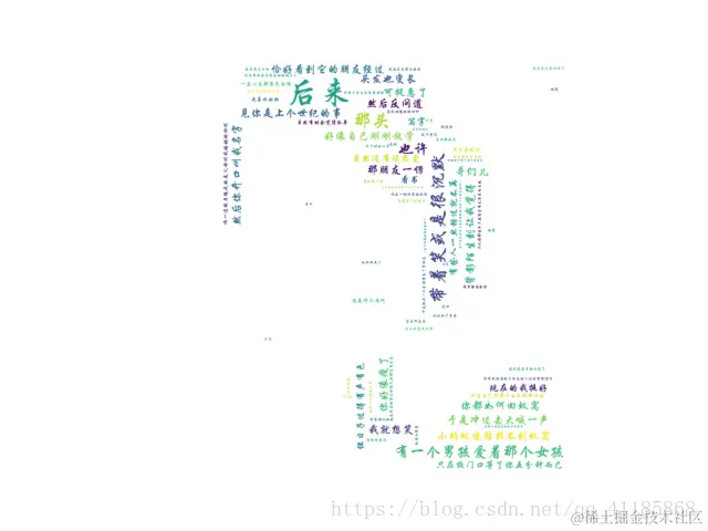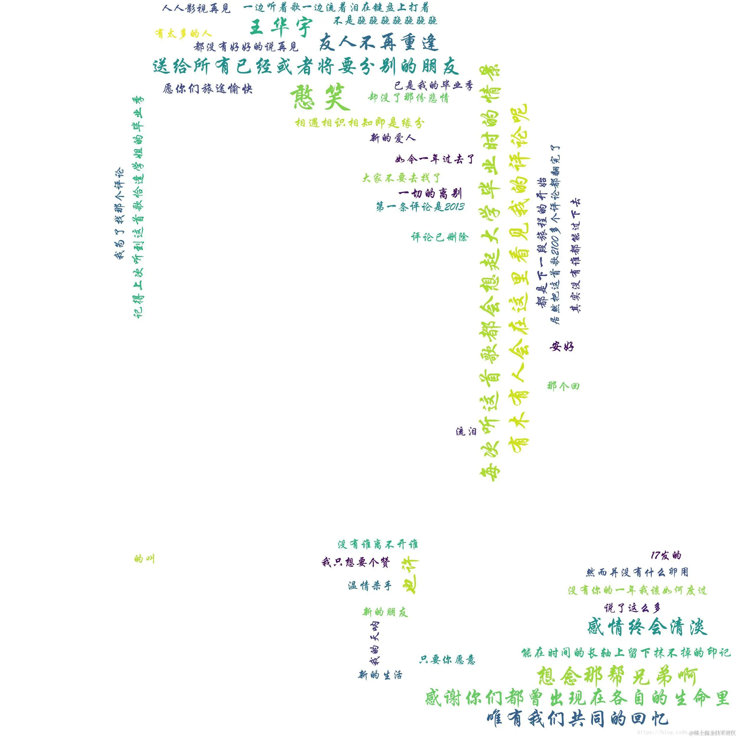 wordcloud.to_file('zaijian.jpg') #保存词云图