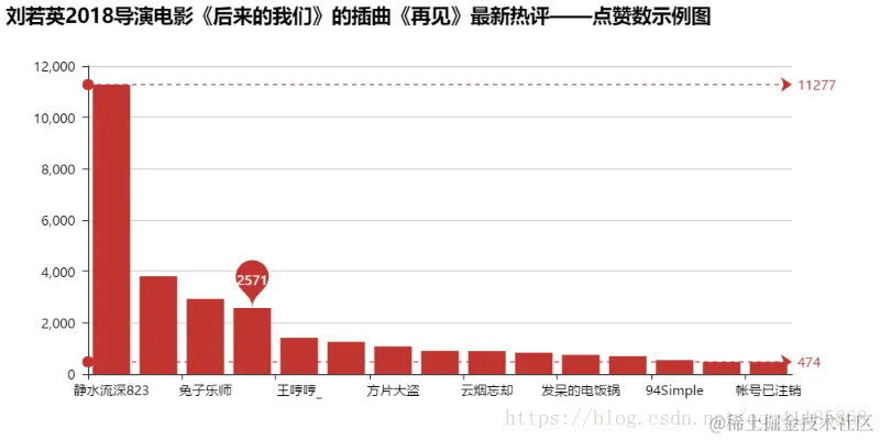 bar = Bar("刘若英2018导演电影《后来的我们》的插曲《再见》最新热评——点赞数示例图")