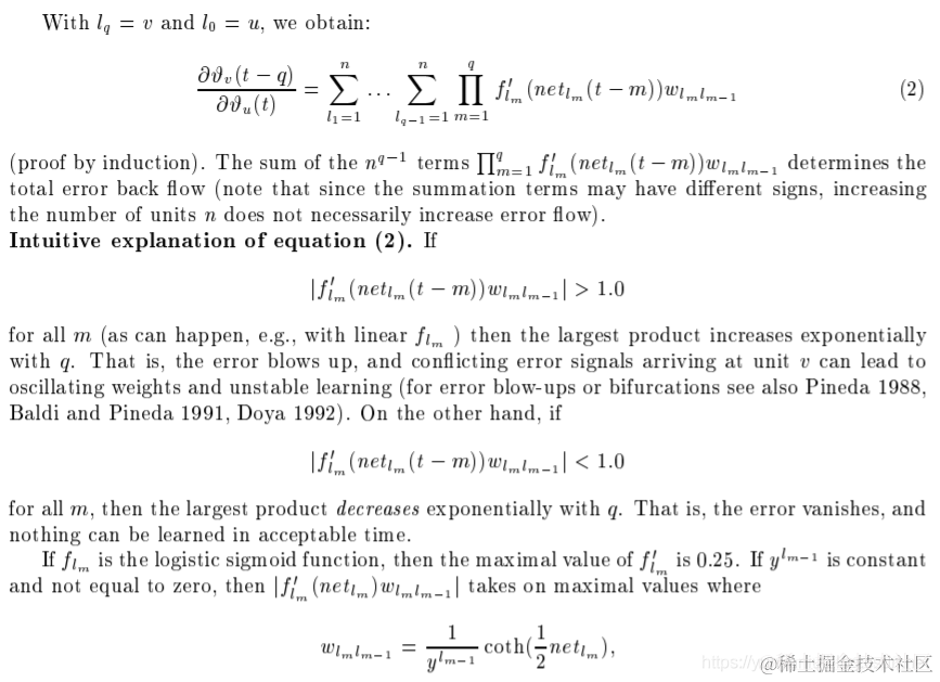| The remedy. This paper presents \Long Short-Term Memory" (LSTM), a novel recurrent network architecture in conjunction with an appropriate gradient-based learning algorithm. LSTM is designed to overcome these error back- ow problems. It can learn to bridge time intervals in excess of 1000 steps even in case of noisy, incompressible input sequences, without loss of short time lag capabilities. This is achieved by an ecient, gradient-based algorithm for an architecture enforcing constant (thus neither exploding nor vanishing) error ow through internal states of special units (provided the gradient computation is truncated at certain architecture-specic points | this does not aect long-term error ow though). | 补救措施。本文提出了一种新的递归网络结构——长短时记忆(LSTM),并结合适当的梯度学习算法。LSTM的设计就是为了克服这些错误的反向问题。它可以学习桥接超过1000步的时间间隔,即使在有噪声、不可压缩的输入序列的情况下,也不会损失短时间延迟能力。这是通过一种特殊的、基于梯度的算法来实现的,它针对的是一种通过特殊单元的内部状态来执行常量(因此既不会爆炸也不会消失)的错误(假设梯度计算在某些特定的体系结构点|被截断,但这并不影响长期的错误)。 |