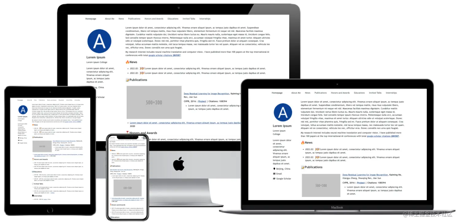 - 美观而简约: 此主页美观而简约,适合个人学术主页的搭建。