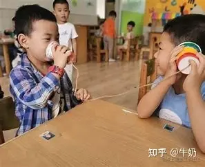 最初人们的通话方式如下图,就是简单的一根线,连接两个传话筒。这样声音就能通过这跟线从一边传到另一边。我们这样设计的目的是:将声音尽可能原样的传送到目的地。