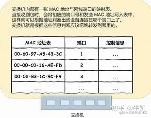 它的主要构成就是MAC地址,交换机的端口号和控制信息。前面说到交换机有了能够信号在端口上一对一和一对多的硬件条件,但是一个数据包具体从某一端口进入后,需要往哪一个端口转发还不太清楚。而MAC地址表就是解决这一问题。如前所述,交换机的目的是尽可能的将网络包原样转发出去。所以它会先从缓冲区中拿起一个网络包,并从网络包中查看这个包的接收方MAC地址,也就是要转发给的下一个网络硬件设备的身份证号,从网络包中拿到号码后,它会从MAC地址表中核对看是否有相同的MAC地址,如果有,就从该行对应的端口将这个网络包转发出去,因为MAC地址表表明此时这个网络硬件设备就连接在交换机的这个端口上。如果没有,交换机就会将包转发到除了源端口之外的所有端口上。只有相应的接收者才能收到这个包,其他设备则会忽略这个包(这里仿佛又回到集线器时代,但偶尔回去一下是没关系的)。并且每一个给交换机发送过的硬件设备,它的MAC地址和进来的端口都会被保存到交换机的MAC地址表中,这样当下次有人想往这个硬件发送信号时,就可以迅速的找到并作为接收方。
