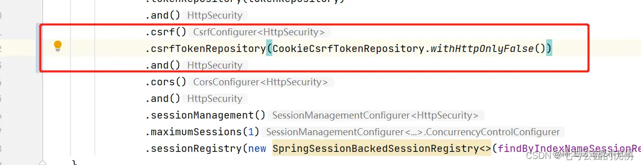默认情况下,SpringSecurity使用的CsrfTokenRepository的实现类是HttpSessionCsrfTokenRepository