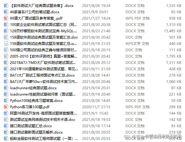 以上就是朋友进入奇虎360面试题的总结,我也整理了一些大厂的面试合集,文章截图是其中的一部分,由于文档文件太多,我这边就不一一给大家截图上来了,一定要学会把好的东西,归纳整理,然后系统的消化吸收,这样才能极大的提高学习效率和成长进阶。碎片、零散化的东西,我觉得最没有价值的。就好比你给我一张扑克牌,我只会觉得它是一张废纸,但如果你给我一副扑克牌,它便有了它的价值。【点击这儿,备注脉脉】
