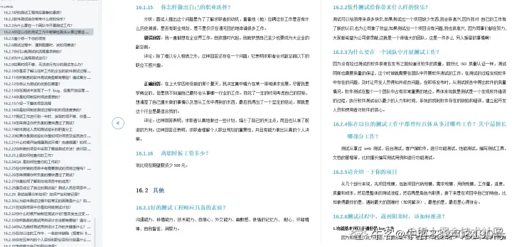 360整体气氛还比较轻松,问题涉及面很广,但是没有太为难。面试难度其实不大,但是太广了,有一些可能平常没注意过的问题。会涉及到Linux、Shell、互联网程序原理、Mysql数据库、抓包工具专题、接口测试工具、Python编程、Web、APP、接口自动化测试、测试高级持续集成、测试架构开发测试框架、性能测试、安全测试【点击这儿,备注脉脉】