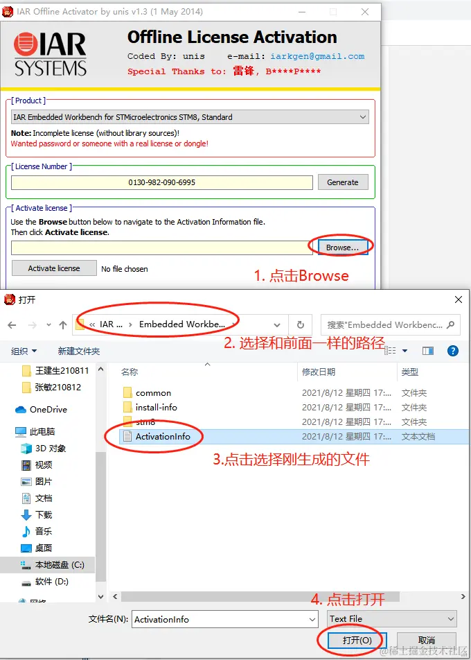 9.切换到前面打开的注册机:在注册机上打开ActivationInfo.txt(刚生成的)